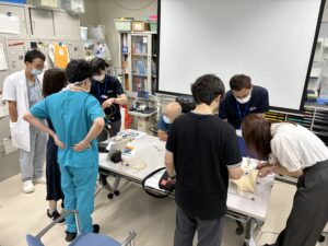 本セミナーは、日本ベクトン・ディッキンソン社の協賛により実施されたもので、肺動脈カテーテルの臨床的意義、安全な挿入手技、留意点、そしてピットフォールについて、模型を用いて実践的に学ぶ機会となりました。